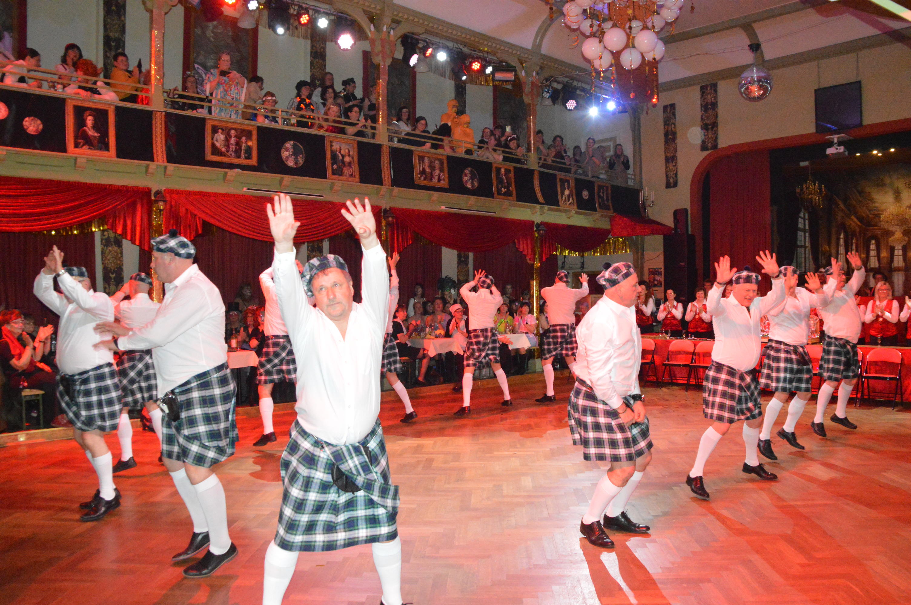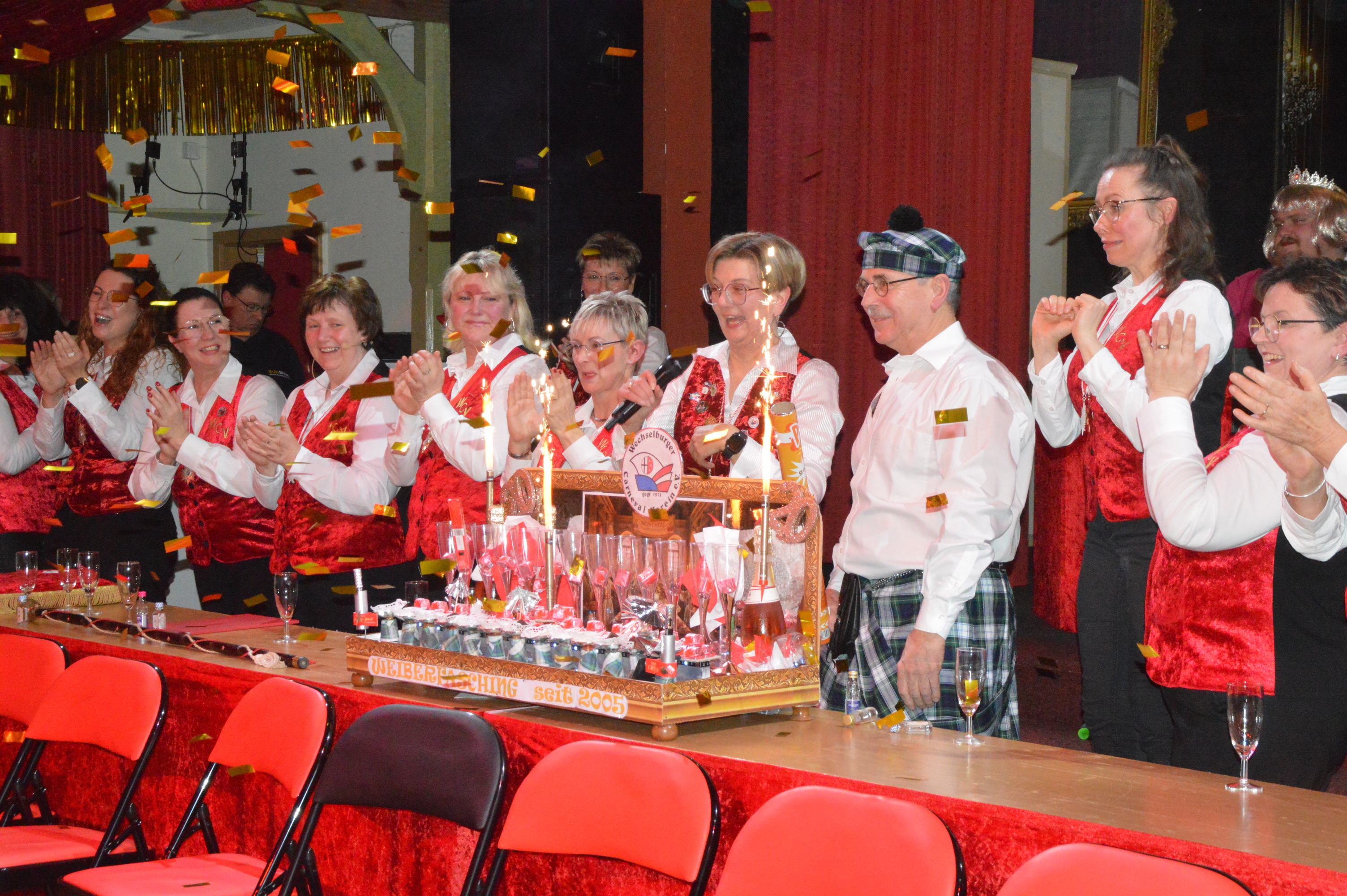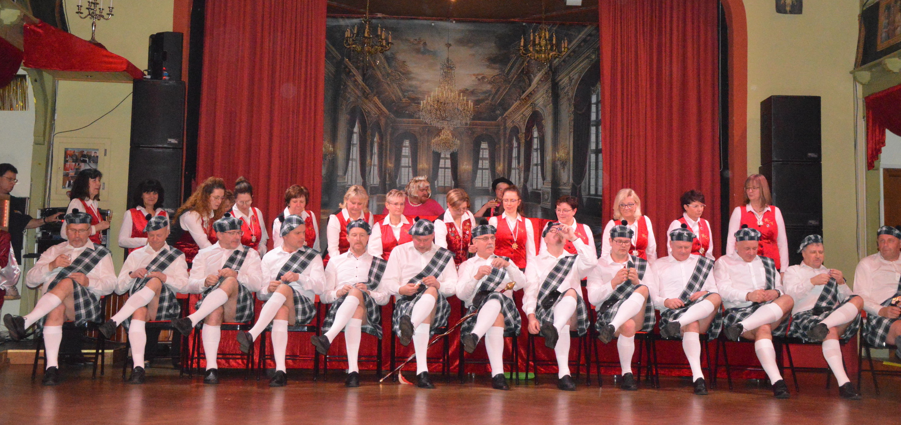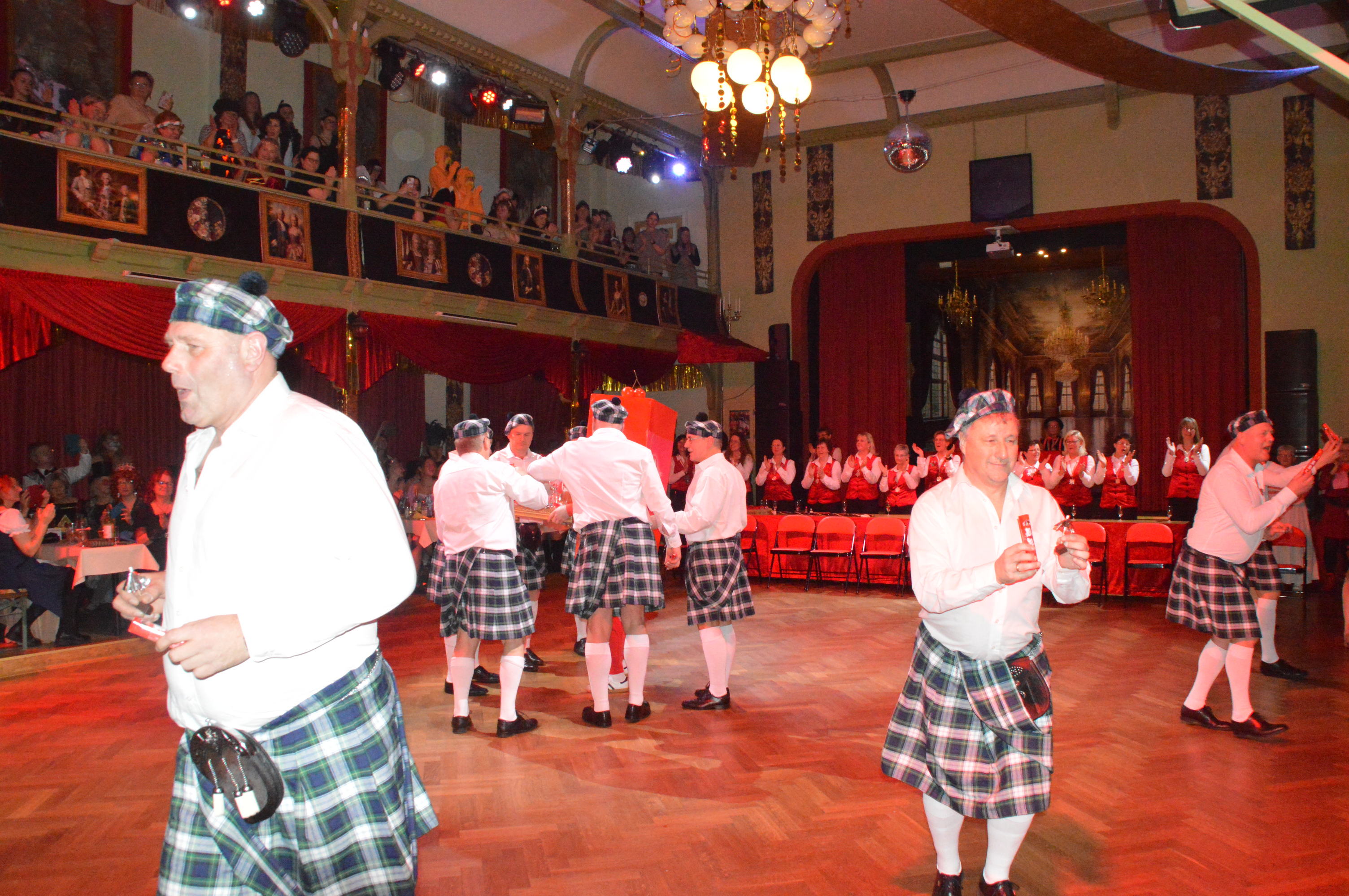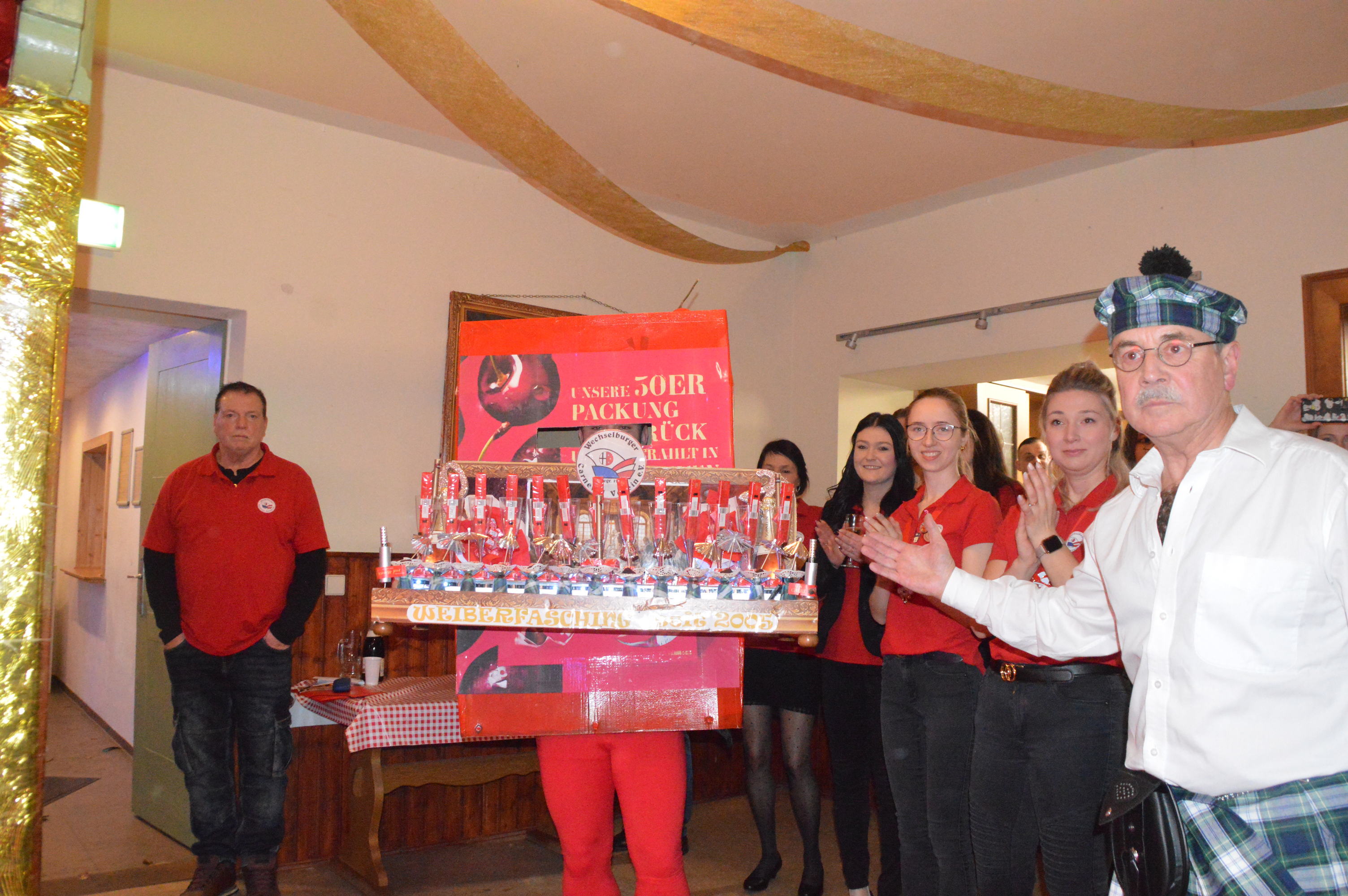 Danach startete das Männerballett als Schottentruppe ihren Tanz. Der war gut und es gab auch viel Beifall dafür. Doch dann kam erst der eigentlich Auftritt. Zum Titel "Mon Cherie"wurden tatsächlich für viele Besucherinnen Mon Cherie auf den Tischen verteilt. Natürlich bekam unser weiblicher Elferrat davon auch eine gehörige Portion ab.