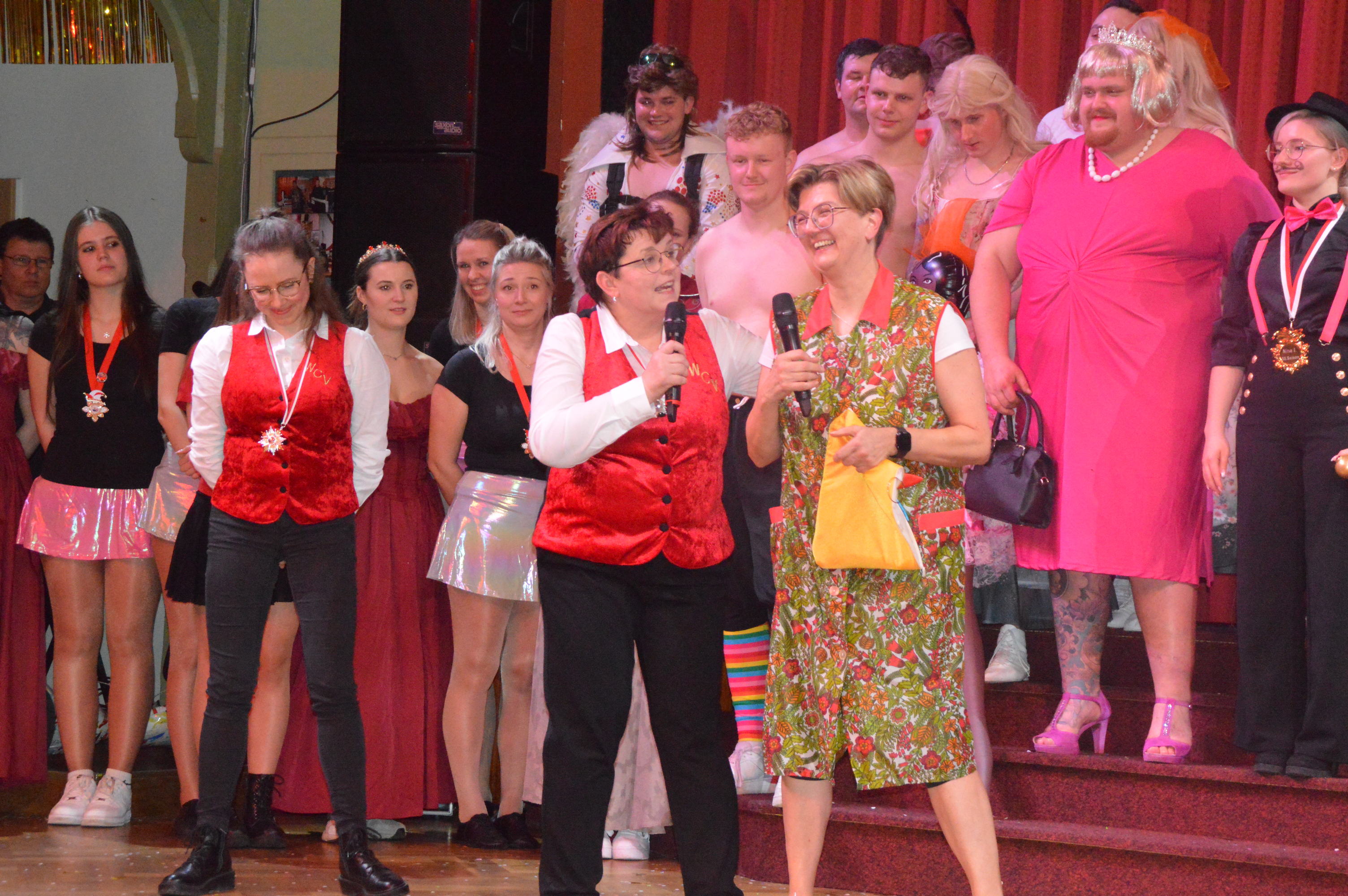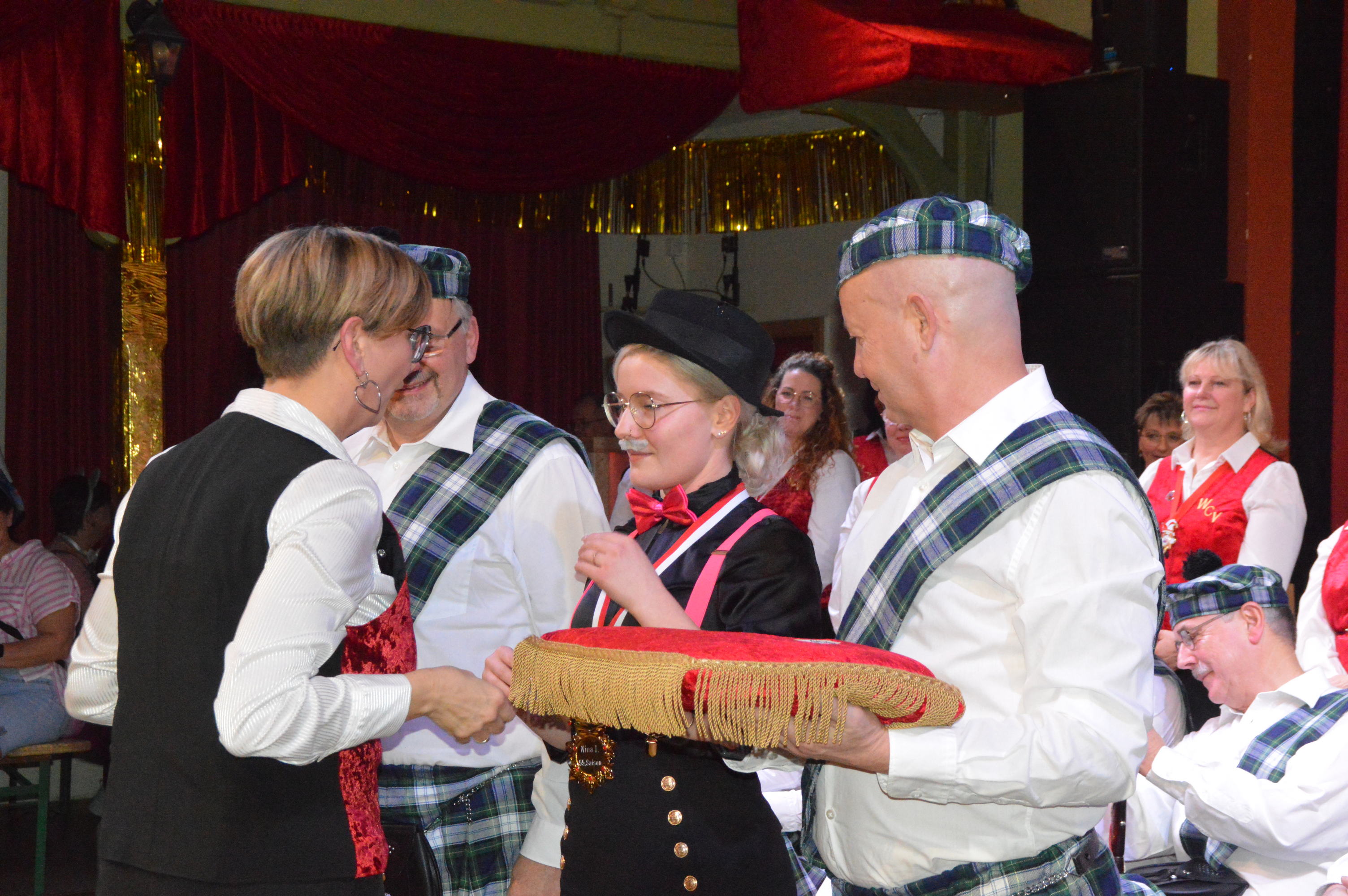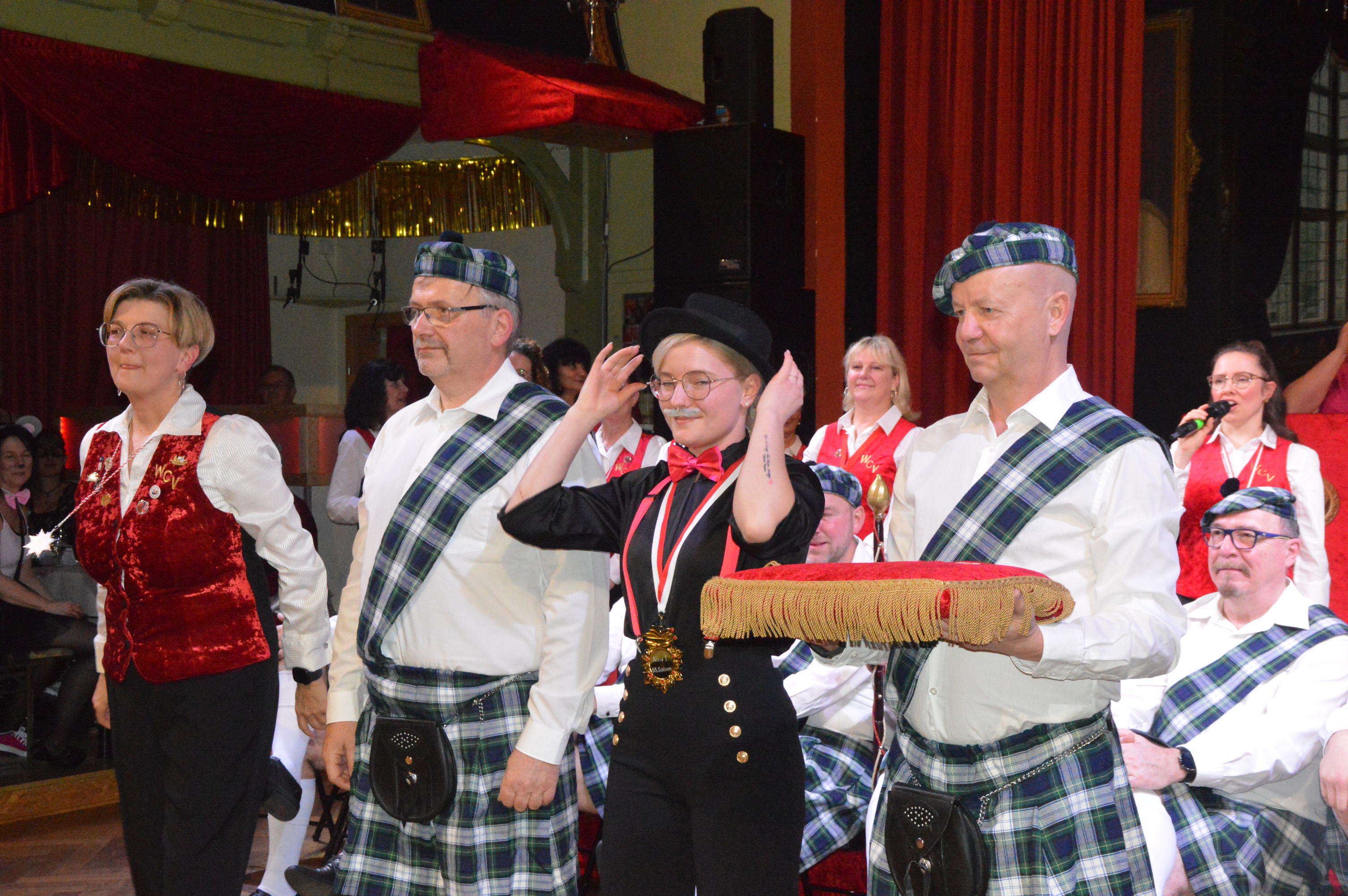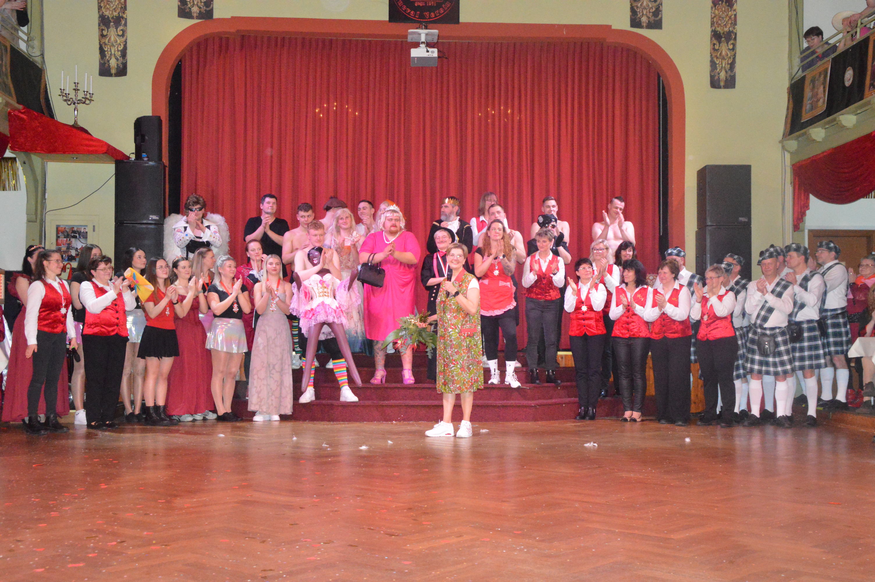 Bevor dann das Programm wirklich zu Ende war, wurden noch eine weitere Personalie bekannt gegeben. Karina Baronius, die jetzt 20 Jahre die Verantwortung für den Weiberfasching inne hatte, übergibt den Staffelstab an die neue Großkruzträgerin Jessica Pester.
