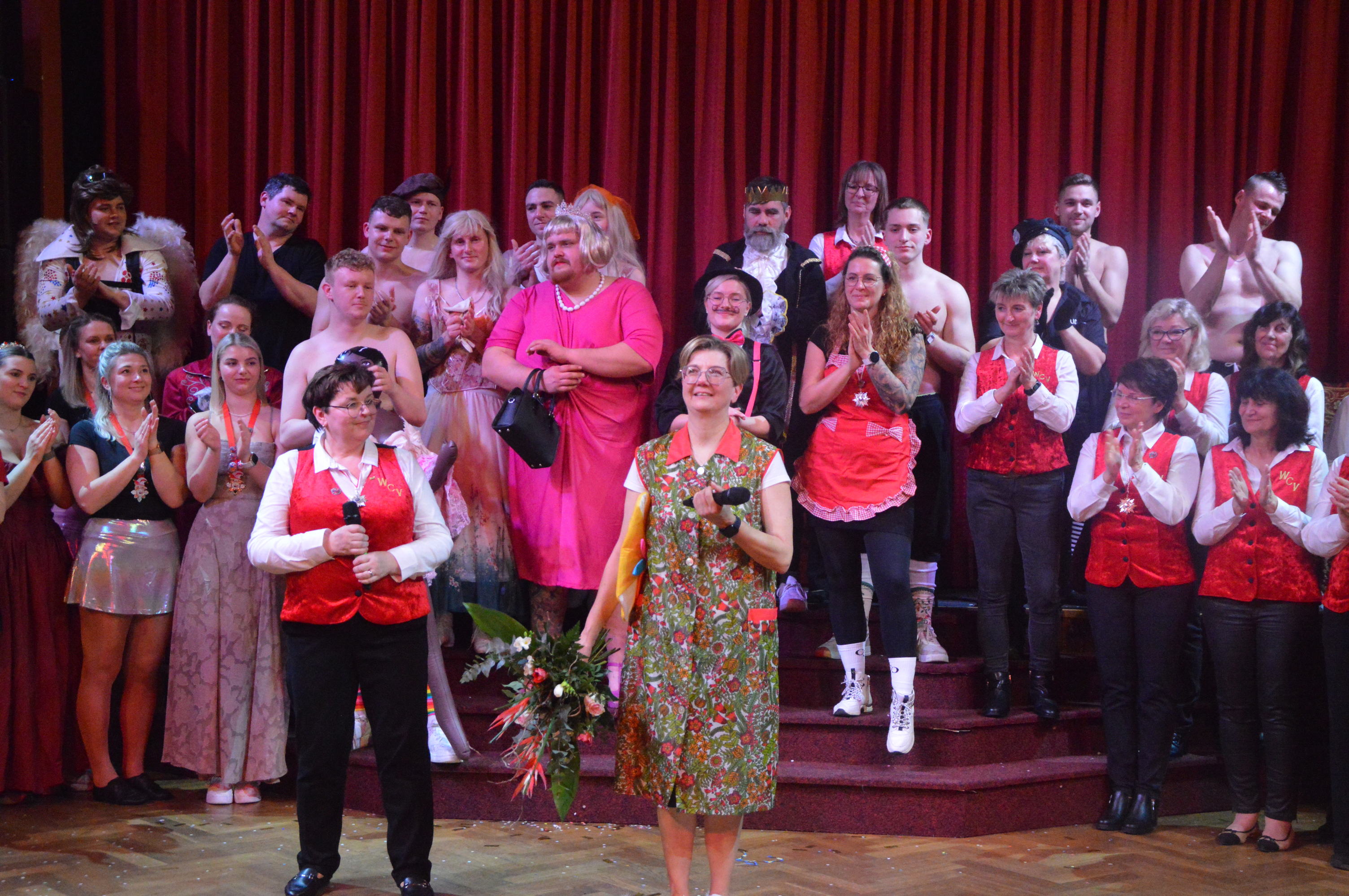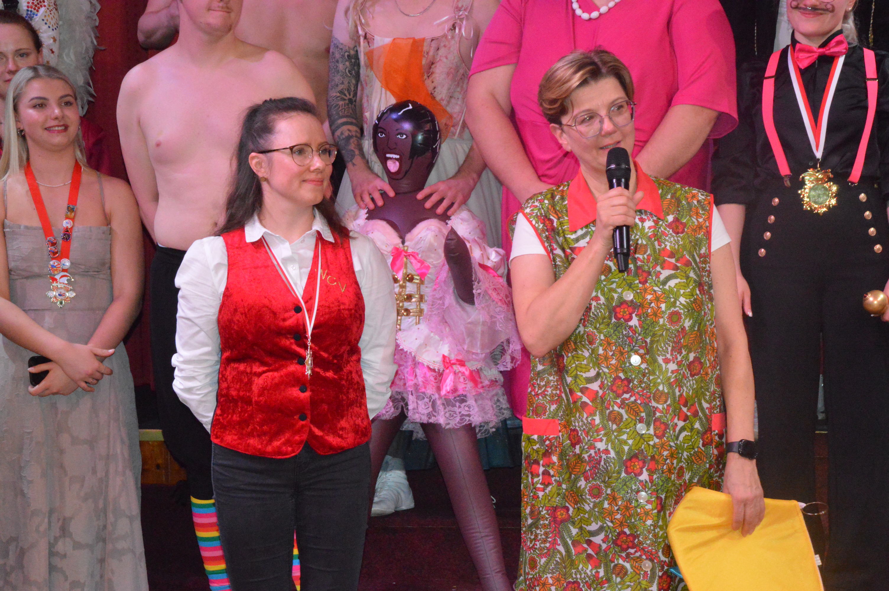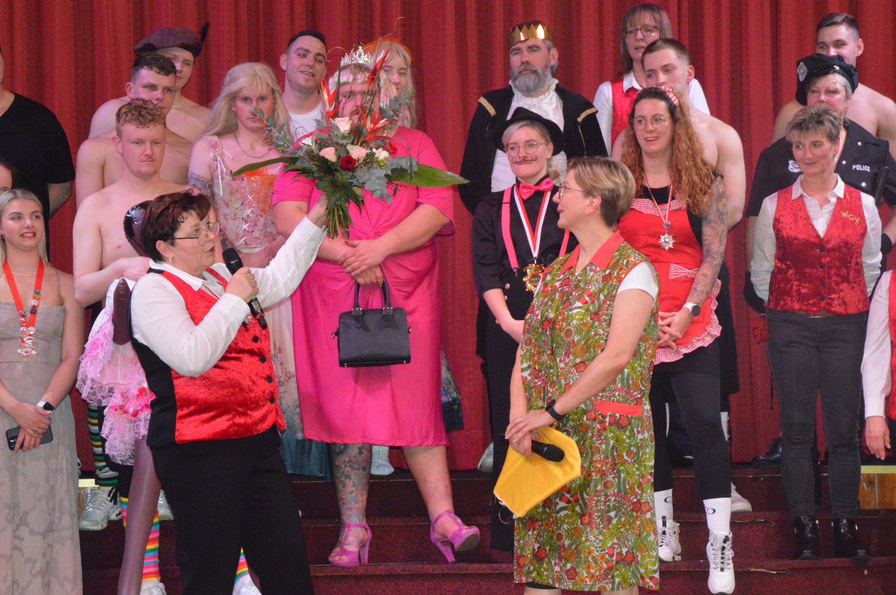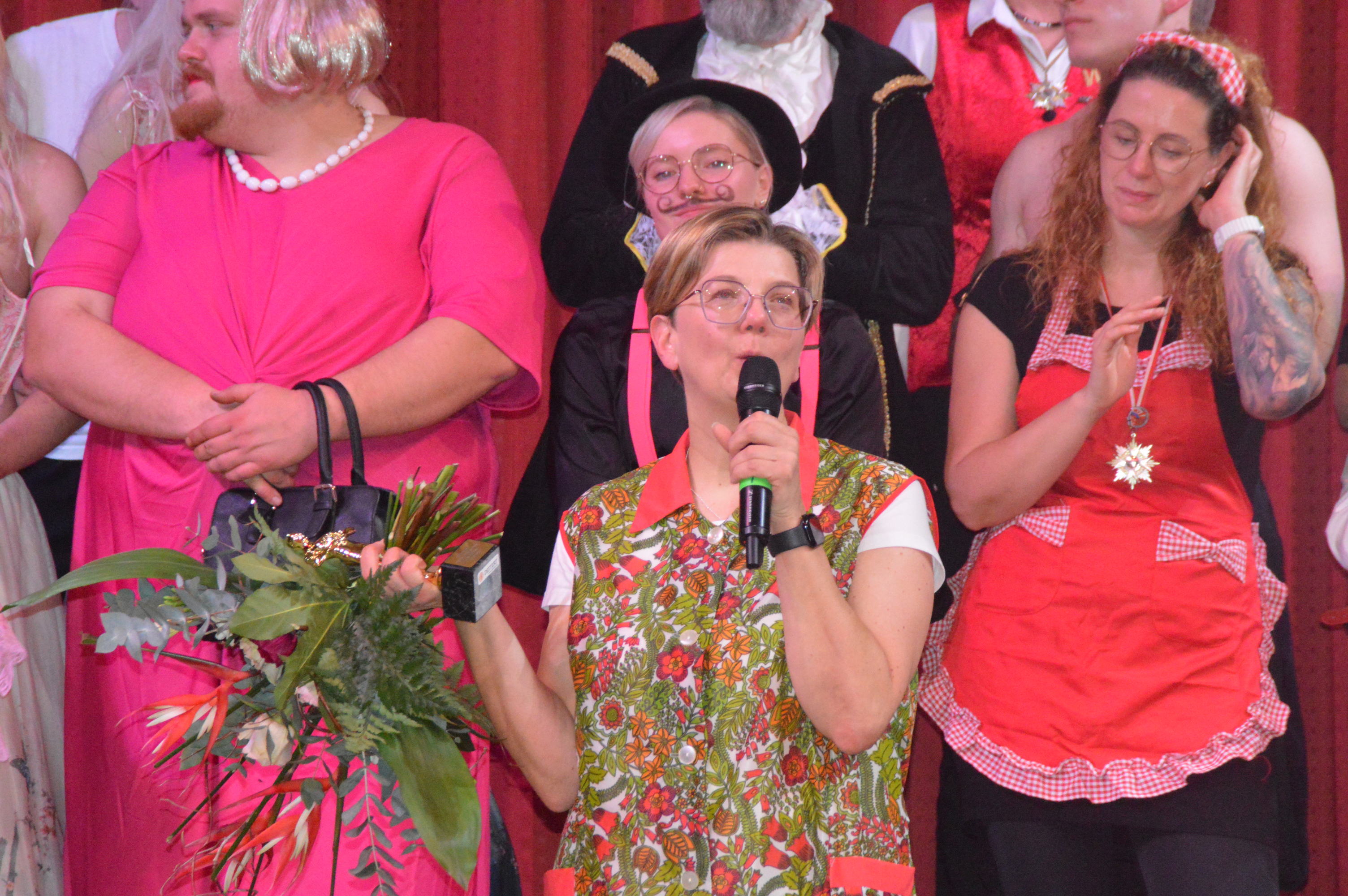 Bevor dann das Programm wirklich zu Ende war, wurden noch eine weitere Personalie bekannt gegeben. Karina Baronius, die jetzt 20 Jahre die Verantwortung für den Weiberfasching inne hatte, übergibt den Staffelstab an die neue Großkruzträgerin Jessica Pester.