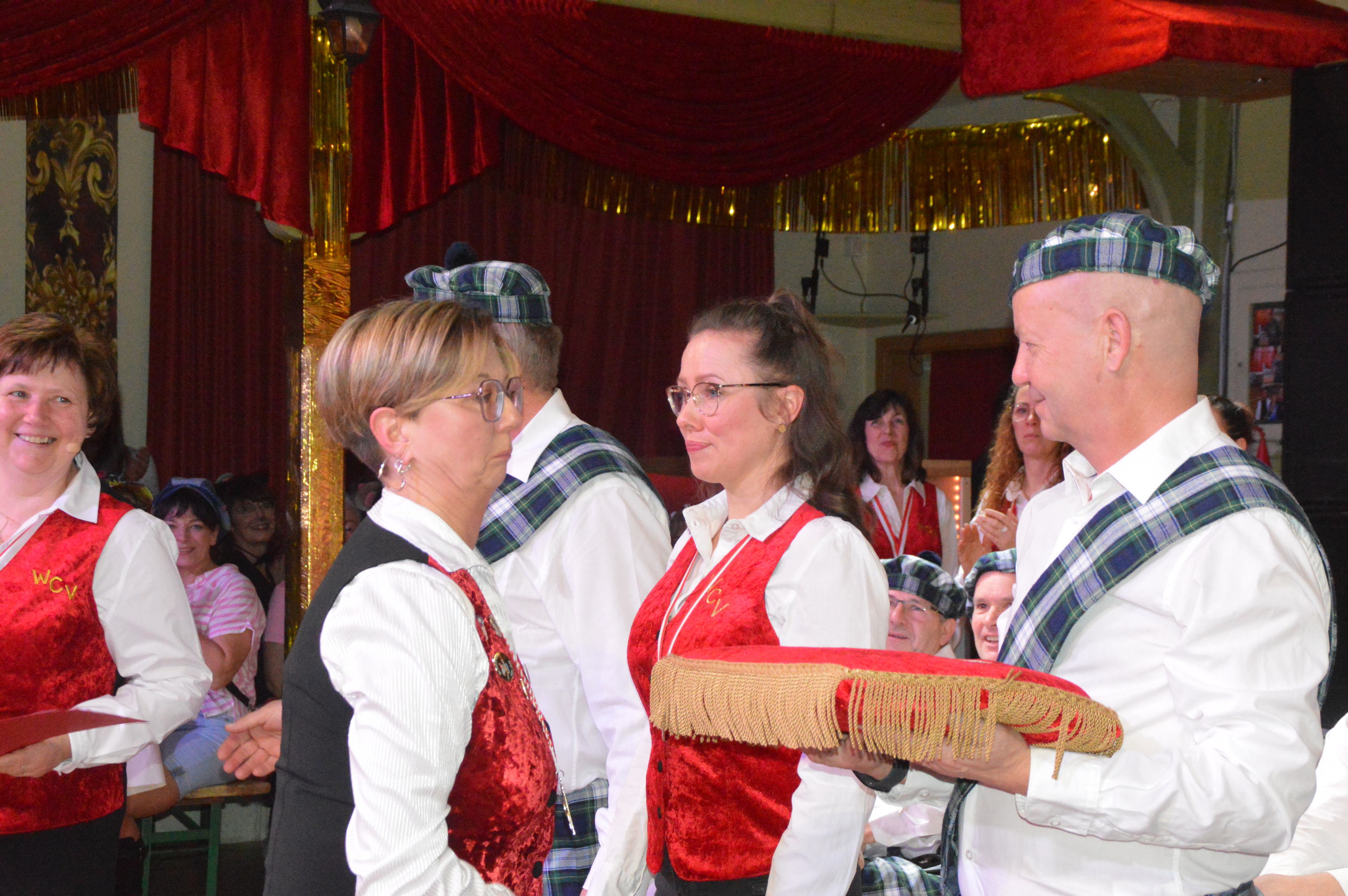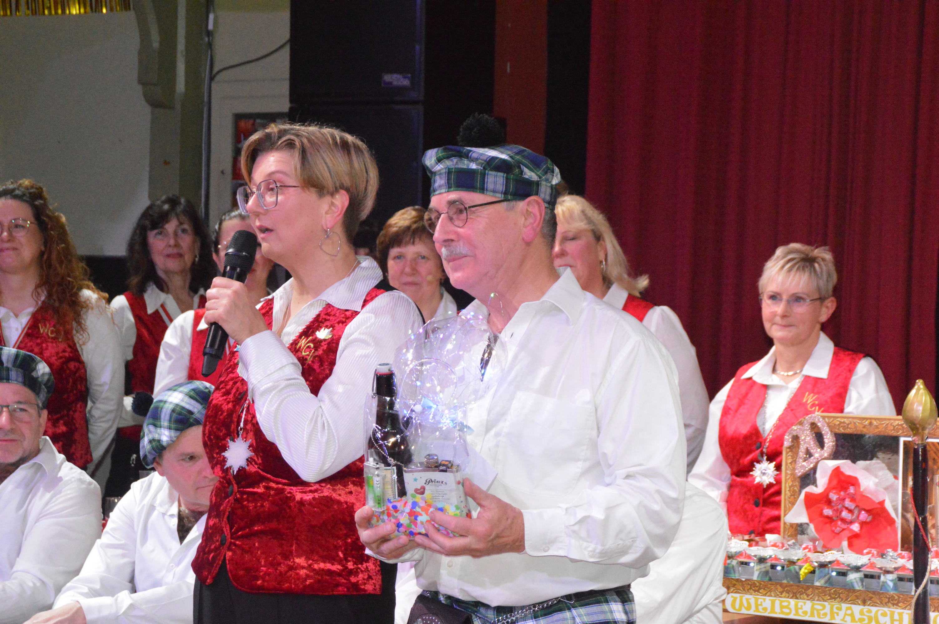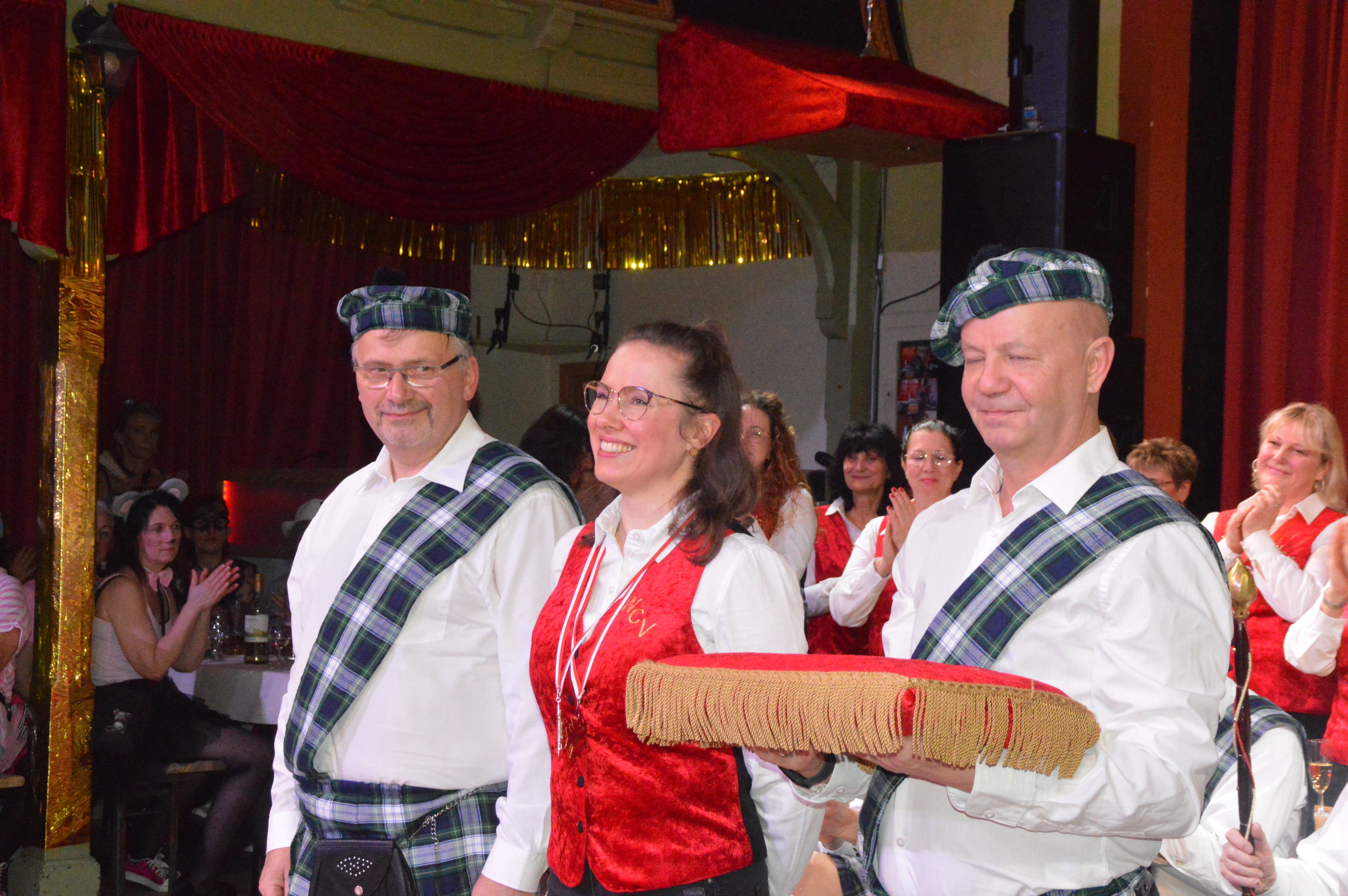 Pünktlich 20:00 Uhr startete der 20. Weiberfasching mit dem Einmarsch der (schottischen) Prinzengarde, die dann unseren weiblichen Elferrat und das Prinzenpaar in den Saal geleiteten. Auch in der 20. Ausgabe des Weiberfasching beim WCV kam unser Prinzenpaar natürlich mit vertauschten Rollen.