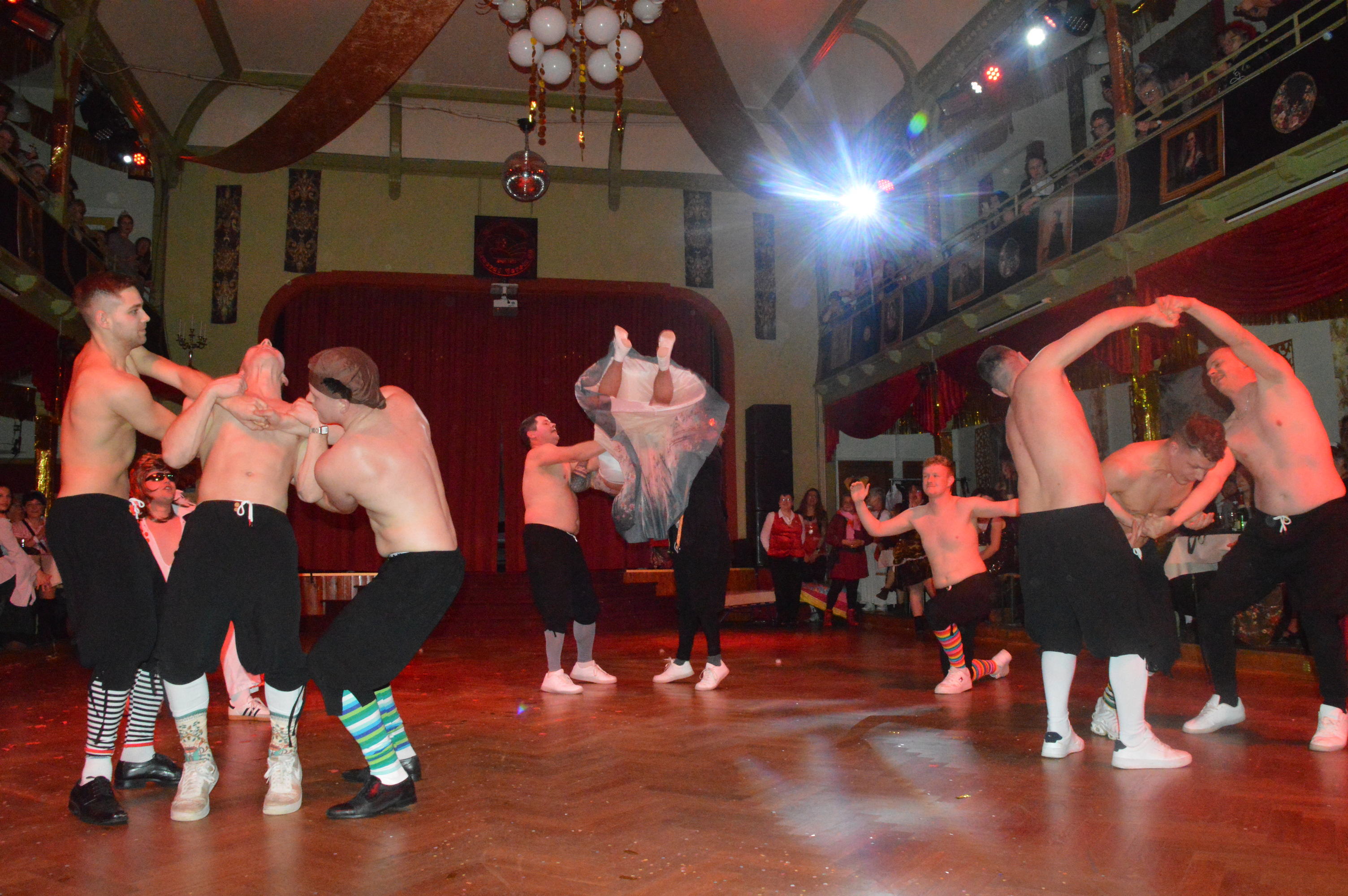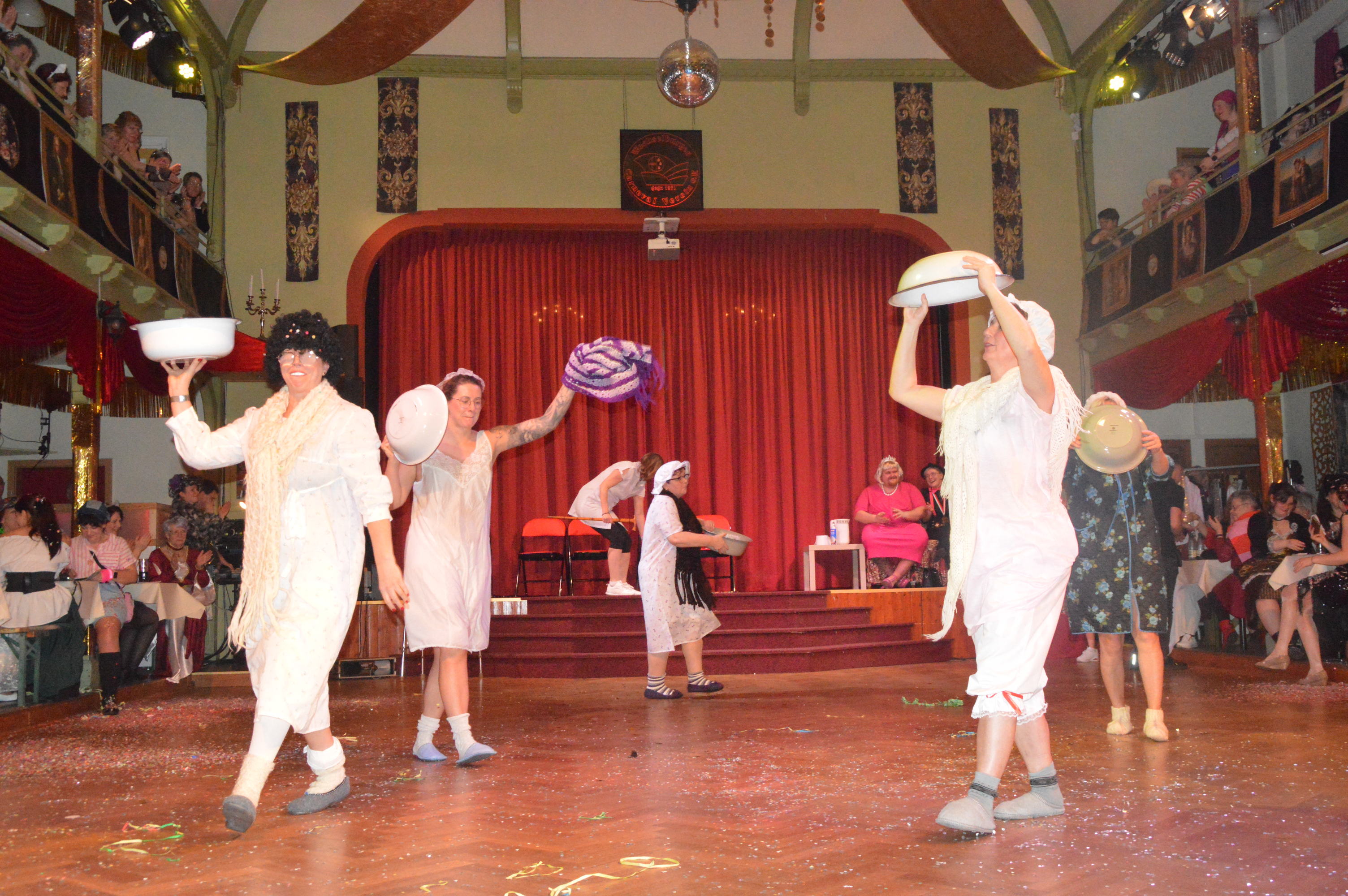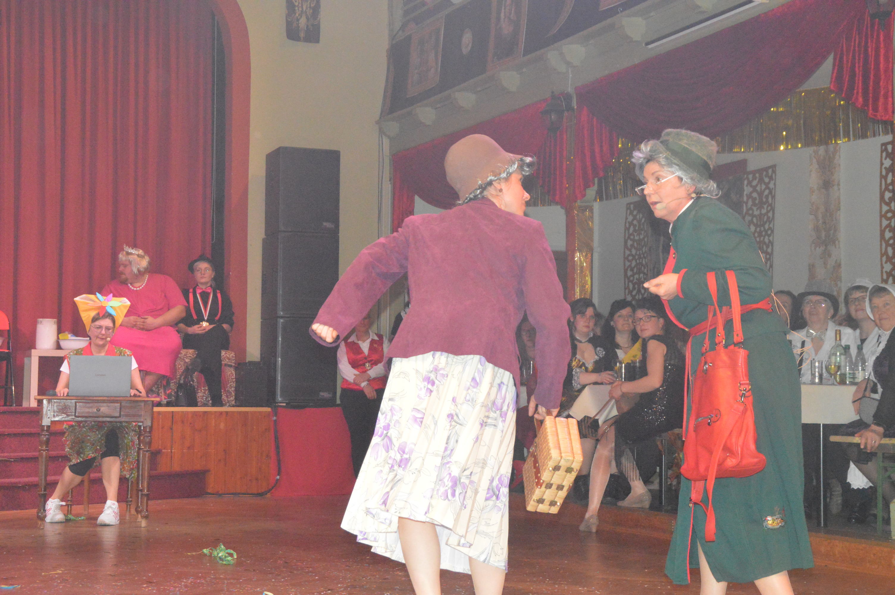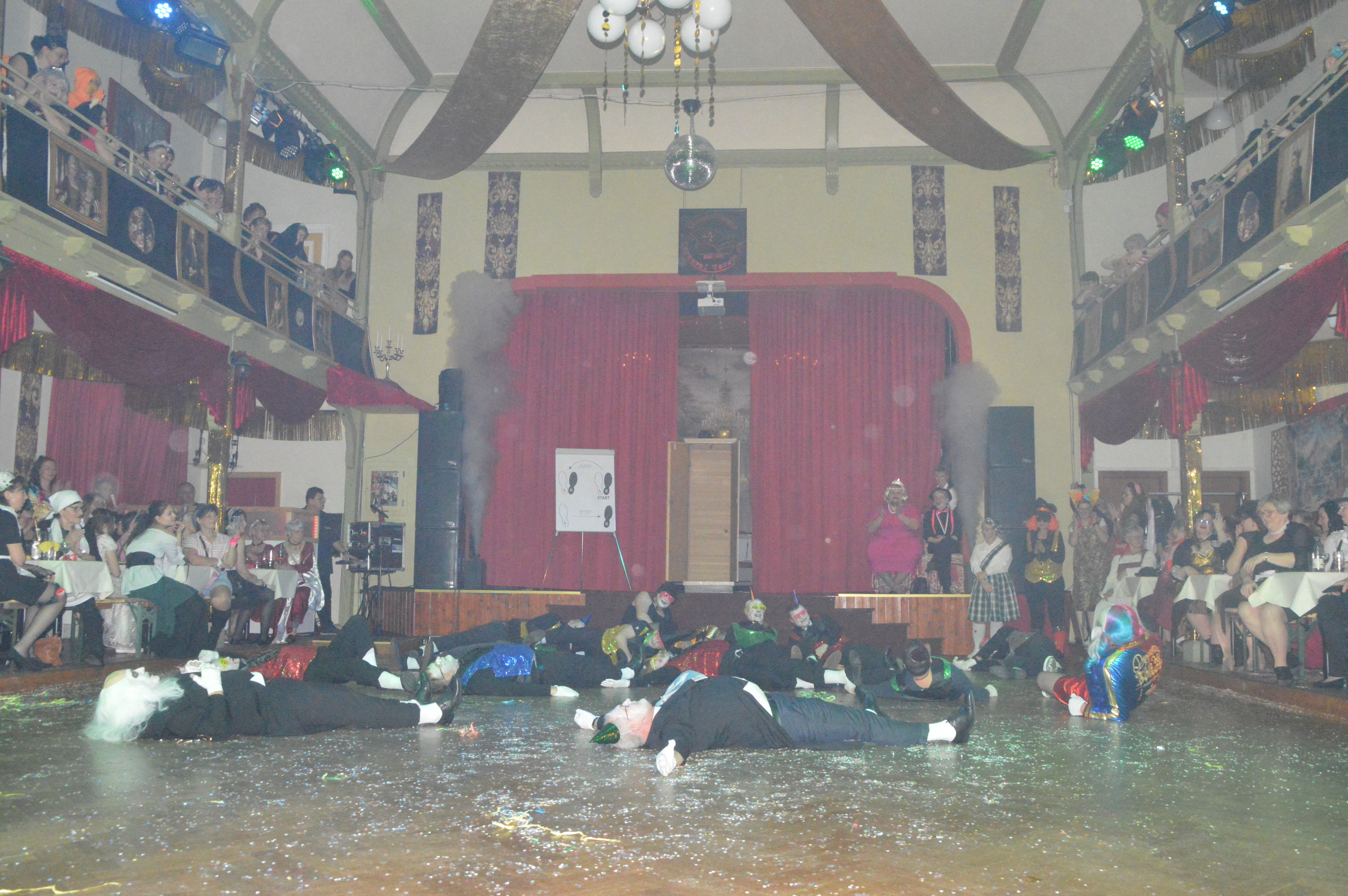 Nach dem Ausmarsch der Funkengarde und des Elferrates war die Tanzfläche sofort gerammelt voll. Dies blieb auch so. Nur unterbrochen von den folgenden Auftritten der Gruppen des WCV. Eingeleitet urden diese immer on kurzen Sketschen durch die Waschweiber.