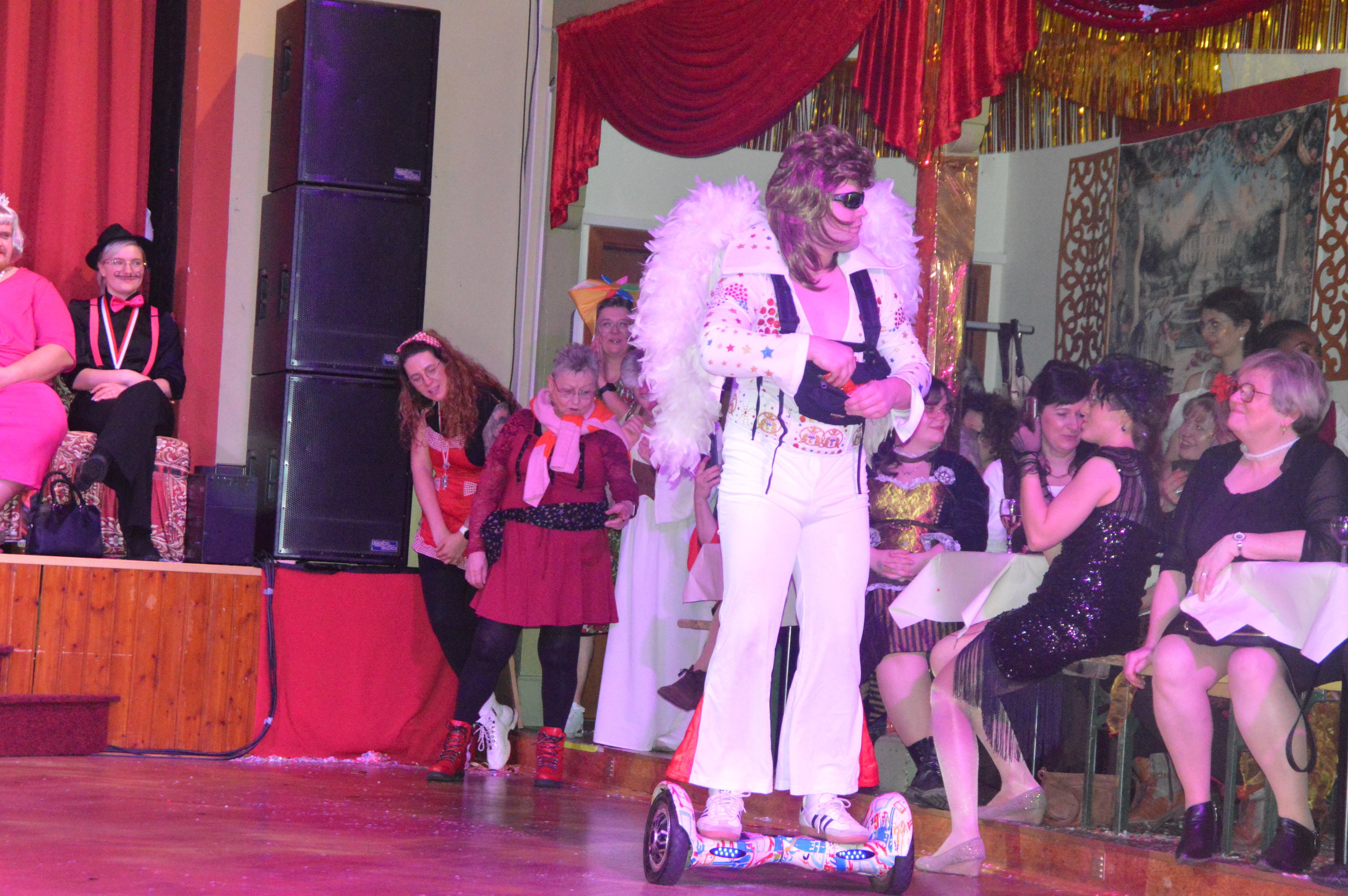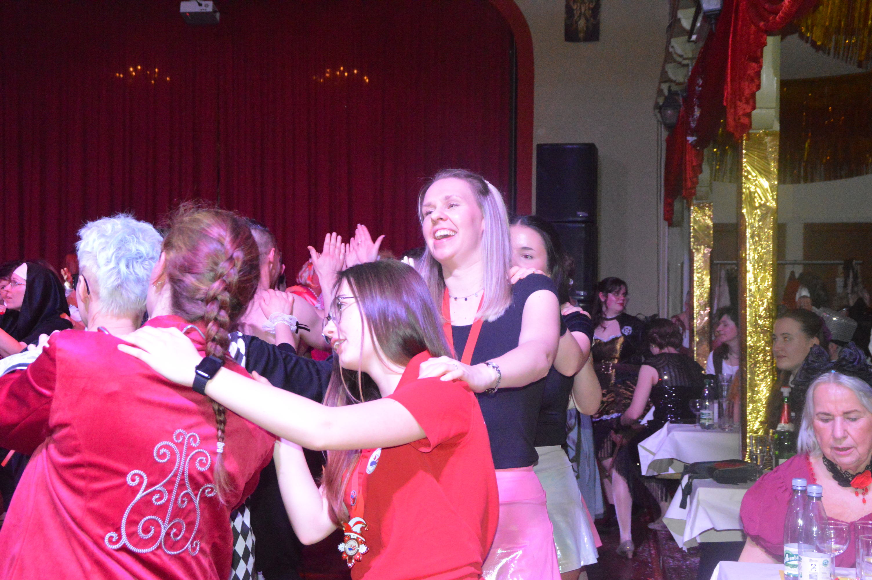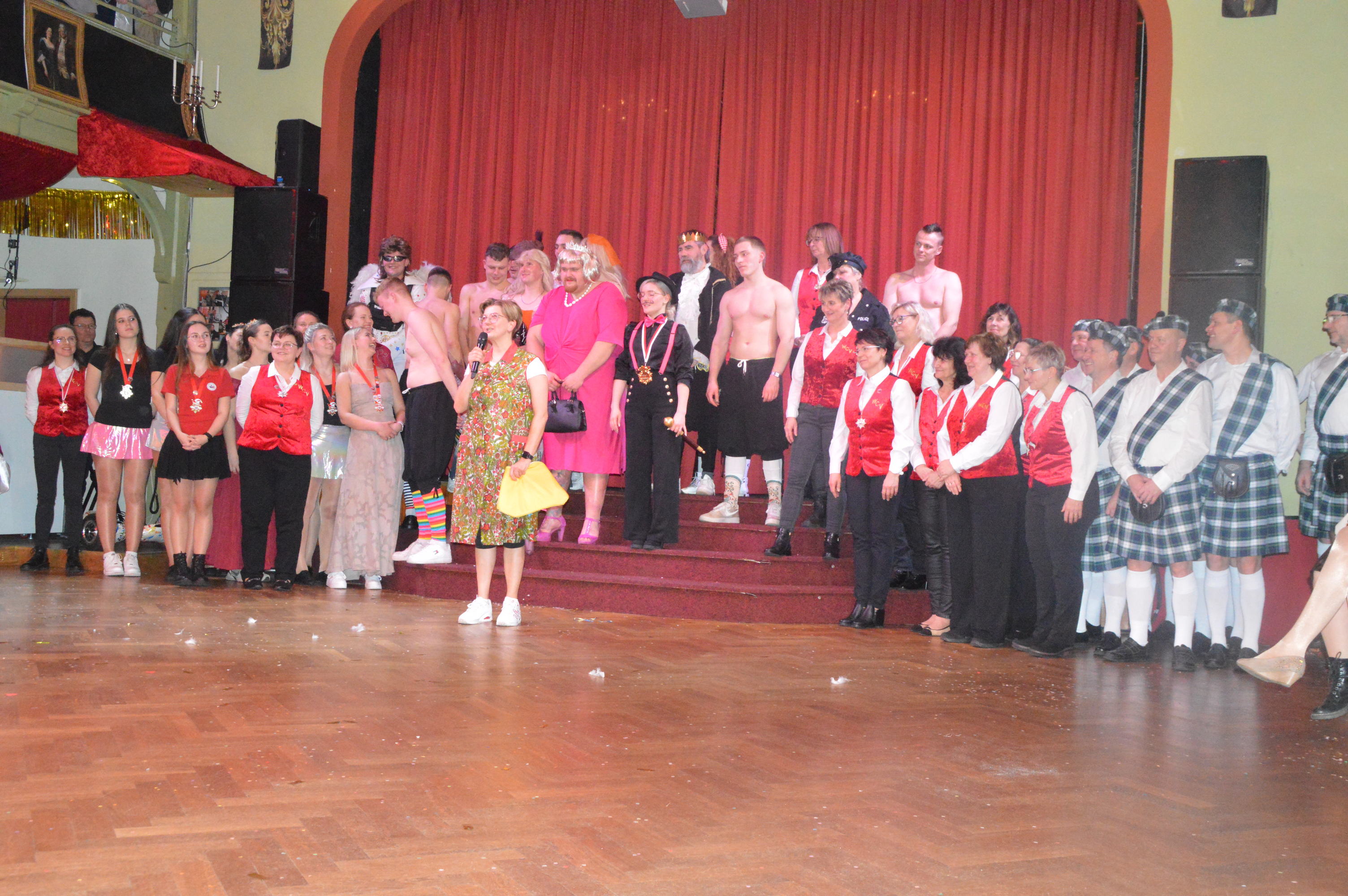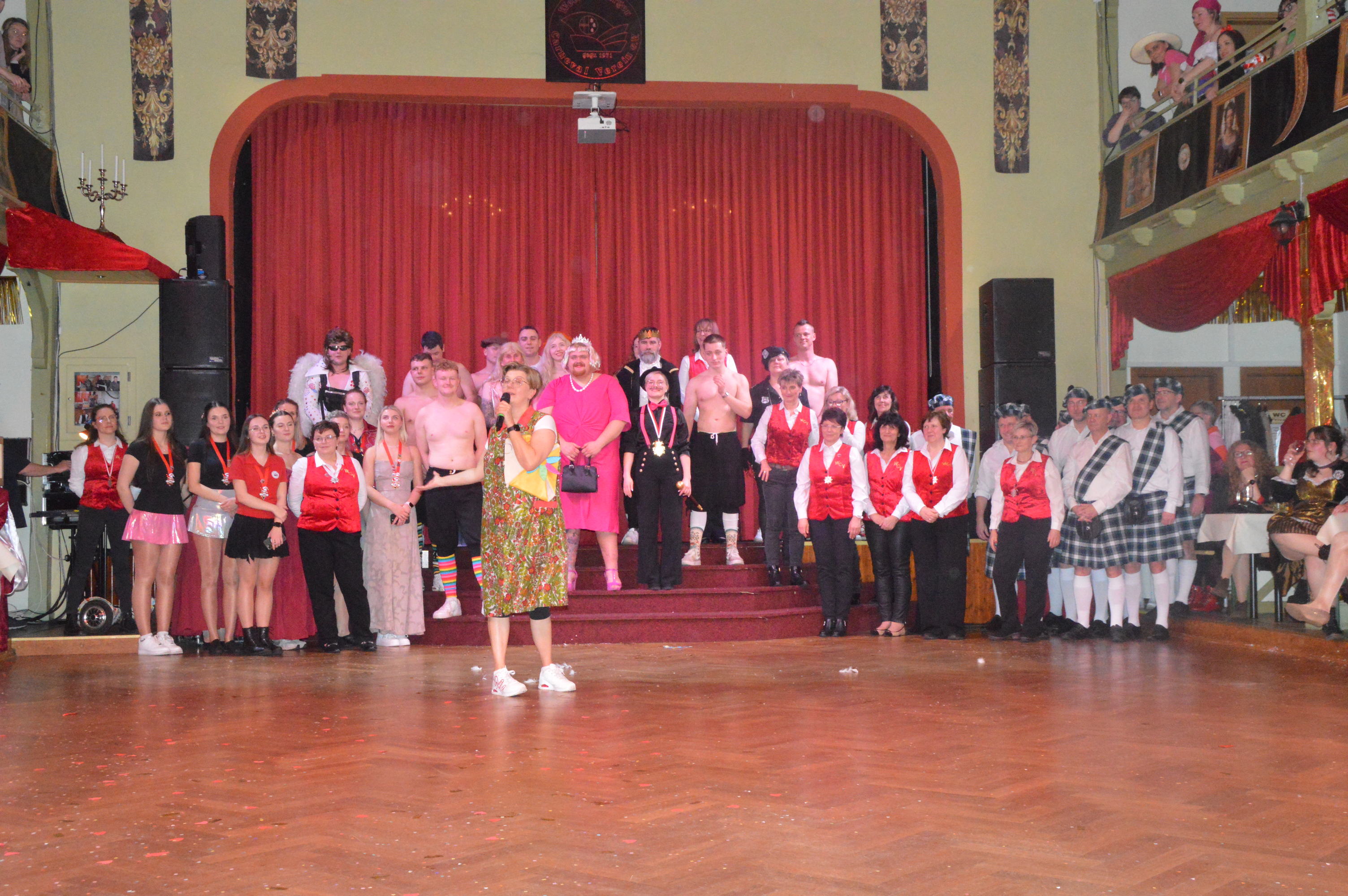 Nach dem Ausmarsch der Funkengarde und des Elferrates war die Tanzfläche sofort gerammelt voll. Dies blieb auch so. Nur unterbrochen von den folgenden Auftritten der Gruppen des WCV. Eingeleitet urden diese immer on kurzen Sketschen durch die Waschweiber.
